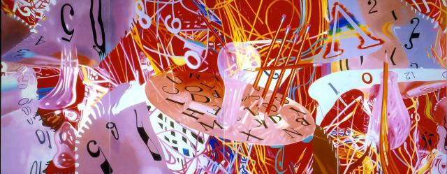 2001 Has solo exhibition including the 17' x 46' painting The Stowaway Peers Out at the Speed of Light (2000) and other Speed of Lightpaintings at the Gagosian Gallery, New York. Included in Les Années Pop: 1956-1968 at the Musée National d’Art Moderne, Centre Georges Pompidou, Paris.